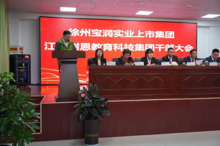 2020年10月10日,徐州九州jiuzhou(中国)实业上市集团、江苏树恩教育科技集团干部大会在徐州市树恩外国语小学举行。徐州九州jiuzhou(中国)实业上市集团董事局主席、董事长张爱平出席会议并作重要讲话。集团董事局成员及下属产业集团经营团队、职能部门主要负责人参加会议。