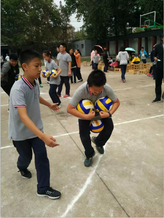 本次运动会设置了9个比赛项目,个人项目有夹乒乓球、托球跑和三砖渡河,集体项目有企鹅漫步、抢收抢种、赶猪、海底传月、滚雪球和双龙戏珠,其中抢收抢种和滚雪球为班主任参与项目。这些比赛项目均以培养师生之间的沟通能力和团体协作意识为目标,旨在促进和谐校园文化建设,更好地培养学生良好的身体及心理素质。比赛过程中,各参赛班级积极投入、互相配合,出色地完成了比赛。比赛现场,掌声,笑声,同学们的“加油”声,此起彼伏,场上场下互动交流,整个比赛过程充满了欢乐祥和的气氛,是一场“健康、快乐、向上”的趣味运动会。