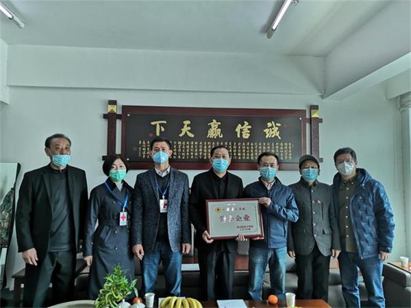 最后泉山区红十字会给九州官方网站颁发了爱心企业牌匾,并合影留念。